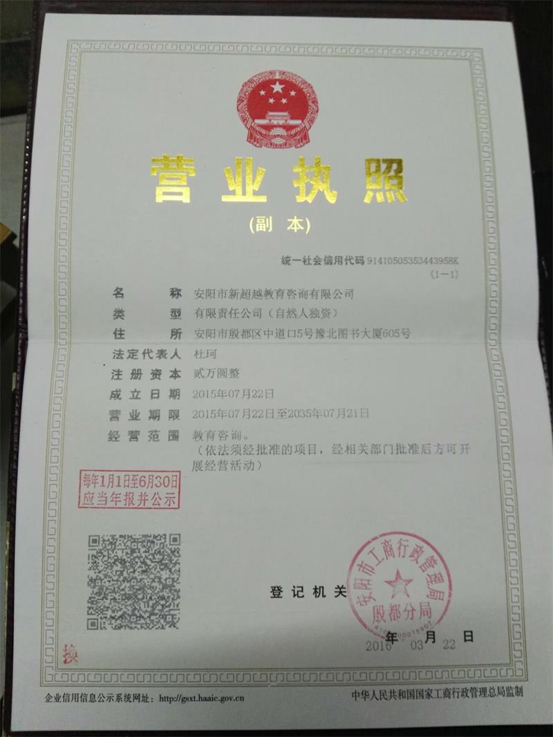 您好,歡迎訪問安陽市新超越教育咨詢有限公司官方網(wǎng)站! 收藏我們 | 設(shè)為首頁 | 聯(lián)系我們